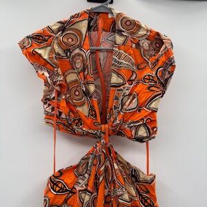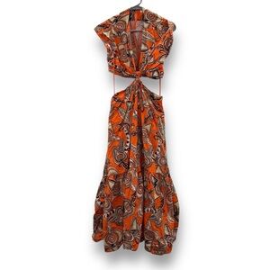 RTR A.L.C. Alexandria Orange Multi Geometric Cut Out Knot Front Midi Dress