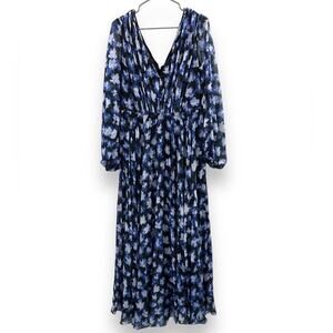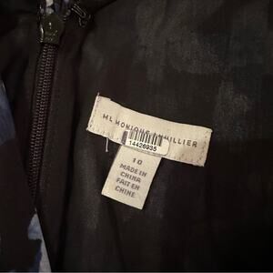 RTR ML Monique Lhuillier Melanie Black White & Blue Floral Maxi Dress Sz 10