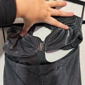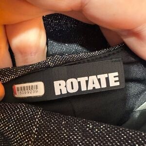 Rent the Runway previously worn piece, but in excellent condition! This is a hard one to photograph, but there are no callouts to point out - it's truly excellent! Disco gets an aughts update in this stunning metallic jumpsuit with waist cutout by ROTATE Birger Christensen. Black metallic jersey (65% Polyamide, 35% Polyester). Lining (90% Polyester, 10% Elastane). Sleeveless. V-neck. Side zipper closure. Small "R" hardware. Italian size 36, which according to their size chart is a US extra small.