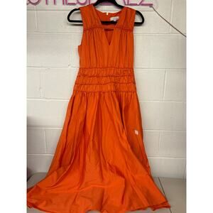 RTR Roksanda Orange Smocked Waist Sleeveless V-Neck Maxi Dress Size 4