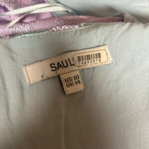 RTR Satin sz 14 xl blue silk Sau lee dress purple flowers long sleeve mini silky