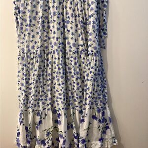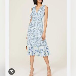 RTR Shoshanna Helena Blue White Floral Ruffle Tiered Maxi Sundress