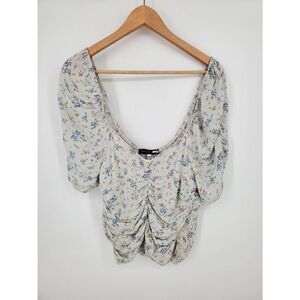RTR Slate & Willow Women's Ruched Puff Sleeve Floral Top Size Small