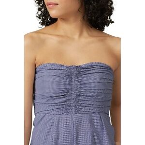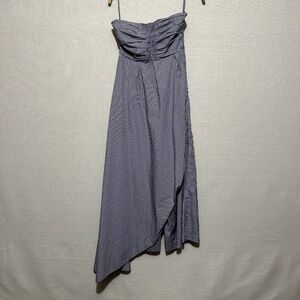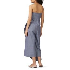 Rent the Runway previously worn piece, but in excellent condition! Make an entrance in this strapless sweetheart jumpsuit by TEIJA, styled with a ruched bodice and dramatic front wrap overlay. Indigo and white cotton woven (100% Cotton). Jumpsuit. Strapless. Straight neckline. Hidden side zipper closure. Hook and eye closure. UK size 6, which is a US 2. Buy now for only 10% of retail price!