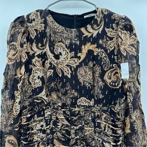 RTR Thurley Faithful Corset Black & Gold Paisley Print Long Sleeve Romper Sz 6