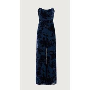 RTR sz 6 Hutch sonnie royal blue velvet floral print strapless jumpsuit wide leg