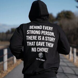 RTS Behind Every Strong Person Hoodie Chocolate Brown Unique Pockets Size L