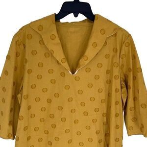 RTW Charleston Womens Polka Dot Print Shirt Dress Mustard Yellow Size XL