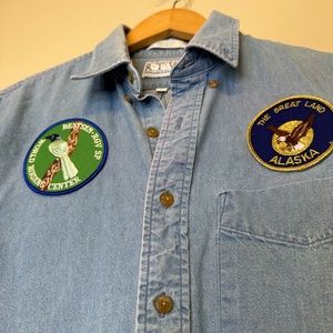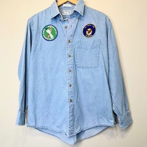 RTW | VTG Scout Patches Chambray Button Up Unisex Uniform Work Shacket Shirt