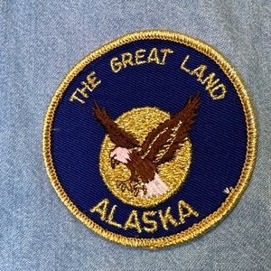 RTW Ready To Wind Down DIY Vintage Insignia Accountrements Cloth Badge Embroidery Iron-on Rank Scout Patches Alaska Costa Rica Texas Chambray High Low Button Down Uniform Work Utility Unisex Shirt