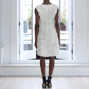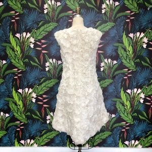 Description: High to low rosette embroidered crewneck gown with hook and eye zipper closure.