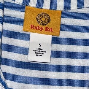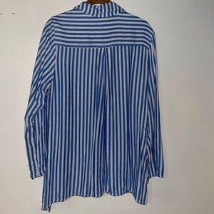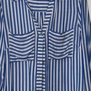 RUBY RD Blue White Striped Button Front Roll Tab Sleeve Blouse Small