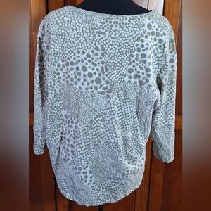 RUBY RD. FAVORITES 3/4 sleeve v-neck t-shirt with animal print. Taupe and white. Very good condition. Size 2X