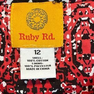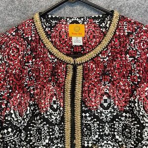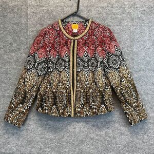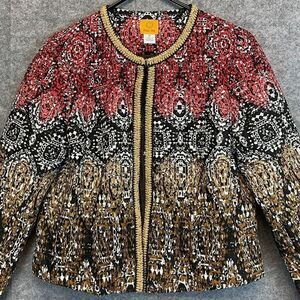 RUBY RD. Jacket Womens 12 Quilted Boho Geometric Red Black Gold Long Sleeve EUC