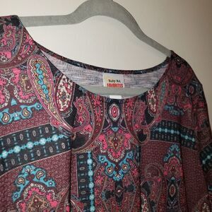 RUBY RD RHINESTONE EMBELLISHED PRINT TUNIC SIZE 1X 3/4 SLEEVE