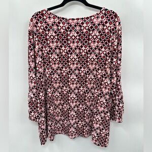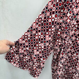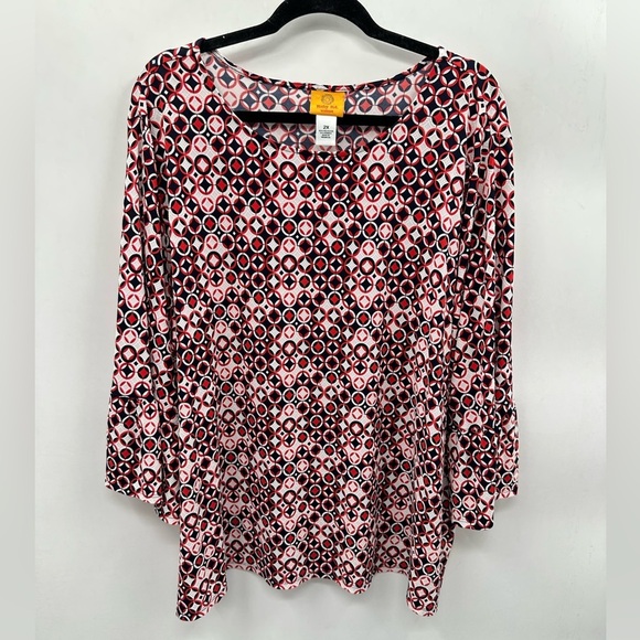 RUBY RD Red-Black bell sleeve plus size polyester stretch coastal grandma top 2X