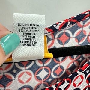 RUBY RD Red-Black bell sleeve plus size polyester stretch coastal grandma top