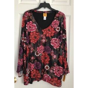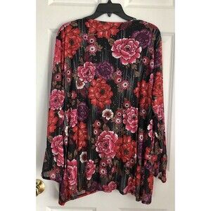 RUBY RD. TOPS PLUS SIZE 2X TOP FLORAL GLITTERING ROSE KIMONO MULTICOLOR PULLOVER V NECK