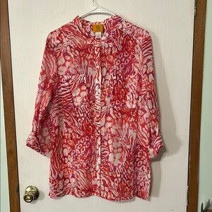 RUBY RD Vibrant Pink and Red Sheer Button-Up Blouse