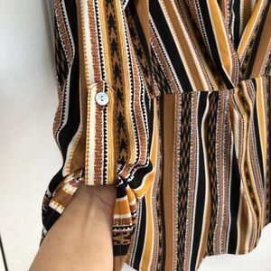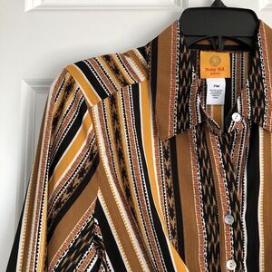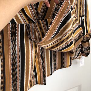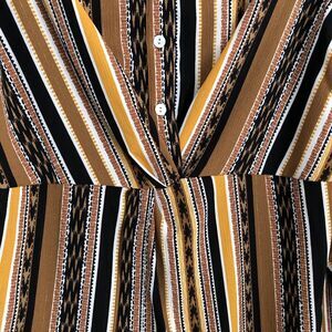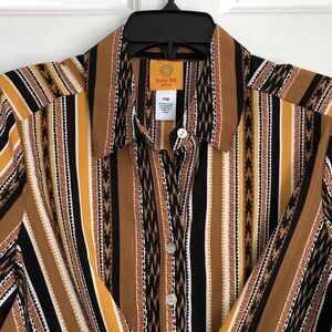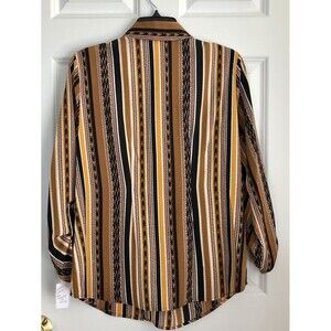 RUBY RD. WOMEN'S PETITE MEDIUM SPLIT BUTTON MIXED STRIPE TOP 3/4/LOG SLEEVES ROLL