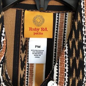 RUBY RD. WOMEN'S PETITE MEDIUM SPLIT BUTTON MIXED STRIPE TOP 3/4/LOG SLEEVES ROL