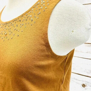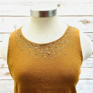 RUBY RD. Women Sleeveless Pullover Round Neck Brown Stretchy Shirt Top Size PM