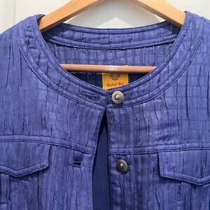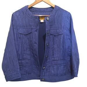 RUBY RD Women's Purple Jacket Sz 12 Linen Blend Textured Fabric Pockets Boho
