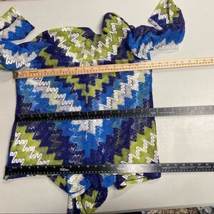RUBY RD. Women’s Asymmetrical Shrug Cardigan Size Small Green Blue and White, Vibrant, Colorful