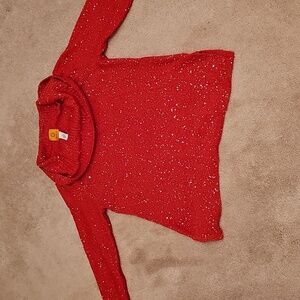 Very pretty, red sequin sweater, side slits, long length of 24 inches, sleeve length of 22 inches and flawless!