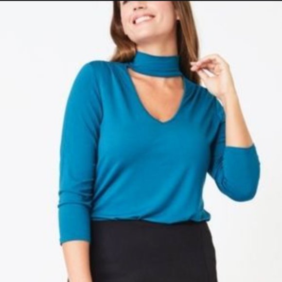 RUBY RIBBON Choker Neck Top in BLUE Size L