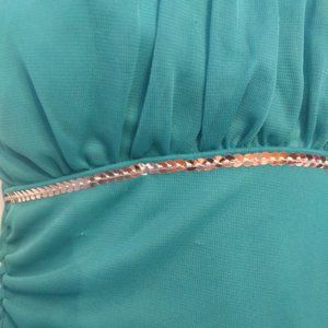 Y2K Ice Queen or Grecian Greek goddess dress. Tagged size M but fits small. Has some minor snagging throughout. See photos for an example. Sequin detailing. Good overall condition but be aware of the overall snagging.