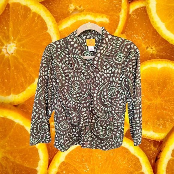 RUBY Rd Brown and Green Patterned Shirt Size 18