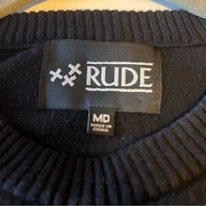 RUDE Unicorn skull pullover sweater, black and white, size M