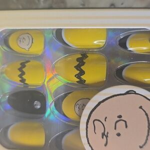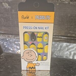 RUDE x Peanuts Yellow and Black Press-On Nail Kit, Charlie Brown, NEW