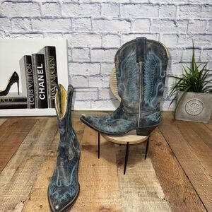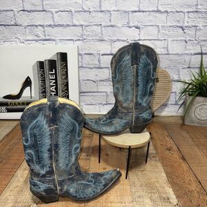 RUDEL snip Toe Western Cowgirl Boots Women's 6 E Grey black Blue Distressed