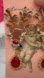 ONLY ONE PAIR IN STOCK. GOLD TONE METAL. ENAMEL, FAUX PEARL, AND RHINESTONE DETAILING. SEE PHOTO FOR POST LOCATION. POST BACK. EARRINGS ARE 2.75''