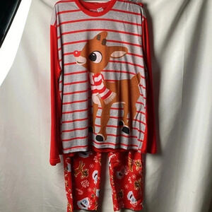 RUDOLPH RED NOSE REINDEER MENS SIZE XL PAJAMA SET COTTON TOP FLEECE PANTS CLEAN