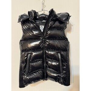 Luxury vest by RUDSAK Canada. Leather and down. Detachable hood. Stretch sides for a fitted look. Size small. NWOT