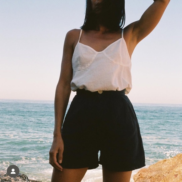 The breeziest summer short in flax! Size 1, color Ink. These are in very good condition and have only slight decoloration which is expected with natural dies and gives it a timeless look. No structural defects, only tiny decoloration spot pictured in photos (it’s really hard to see in real life because it’s hidden by the fold in the front but want to be upfront about that). The waist is high, just over 12 inches, with roomy hips and about 3.5 inch inseam. These have very roomy pockets and a slightly vintage look. I’m only choosing to sell because I’ve accrued a collection on similarly cut shorts, most of them linen and vintage, tailored to my dimensions.