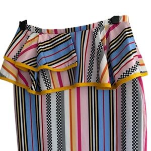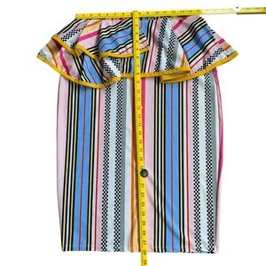 RUE 107 New York Blue Pink Mustard Stipes Pencil Skirt With Peplum