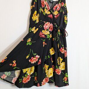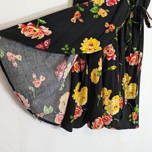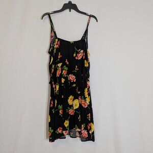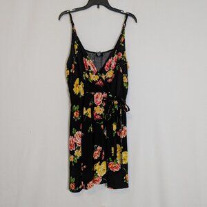 RUE 21 Black/Pink/Yellow Floral Mini Faux Wrap Tank Dress; Size XL