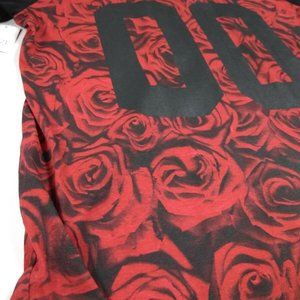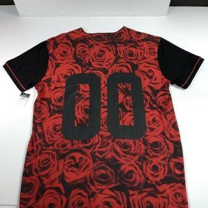 RUE 21 CARBON Mens (L) Short Sleeve Rose Print Collarless Tee Beach Tops Blouse