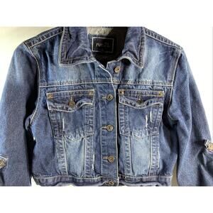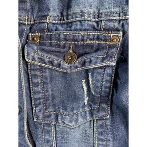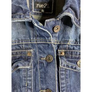 RUE 21 Distressed Cropped Denim Jean Jacket Long Sleeve Women's Juniors Large