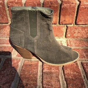 Rue 21 Peep Toe Booties Size 7/8 Olive Suede Laser Cut