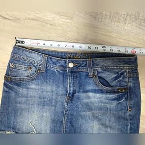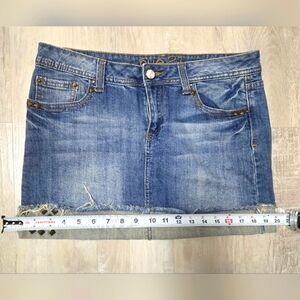 Chic denim skirt by Rue 21. Features distressed hem and stud accents.
