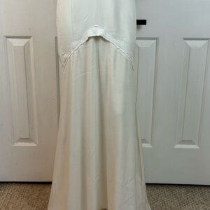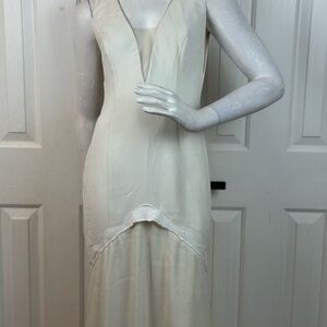 Chic cream maxi dress with a sleeveless design. Features a deep V-neckline. Perfect for elegant occasions dress in good condition needs cleaning: ironing.
