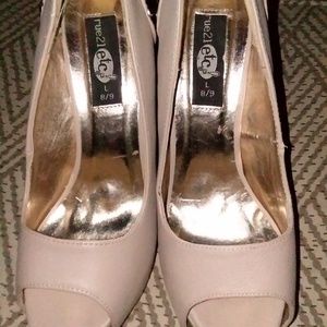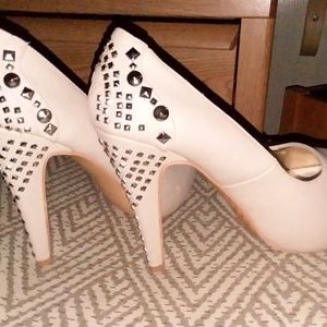 Beige RUE21 high-heels with silver, metal studs. Stunning beige peeptoe heels with silver studs. Have only worn once and are in great condition! No scuffs or marks