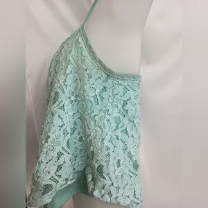 RUE21 Green Ruffled Crop Summer Floral Strappy Sheer Camisole size M (#1,561)