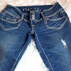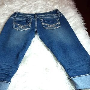 RUE21 Woman's 1/2"LowRise Riveted Cropped Jeans Cuffed 26Wx 27L x19