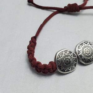 RUFF HEWN Shamballa ornate disc burgundy cord unisex bracelet